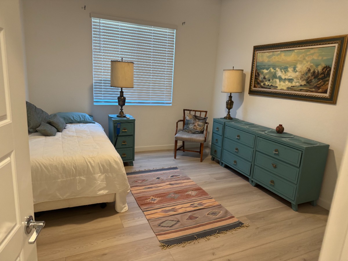 Currently there is only a twin bed in the bedroom. This can be changed. Actually, any of the pieces of furniture can be changed if desired. Utilities are included in the rent. If interested, call Jennifer Whitmore 808-352-1359.