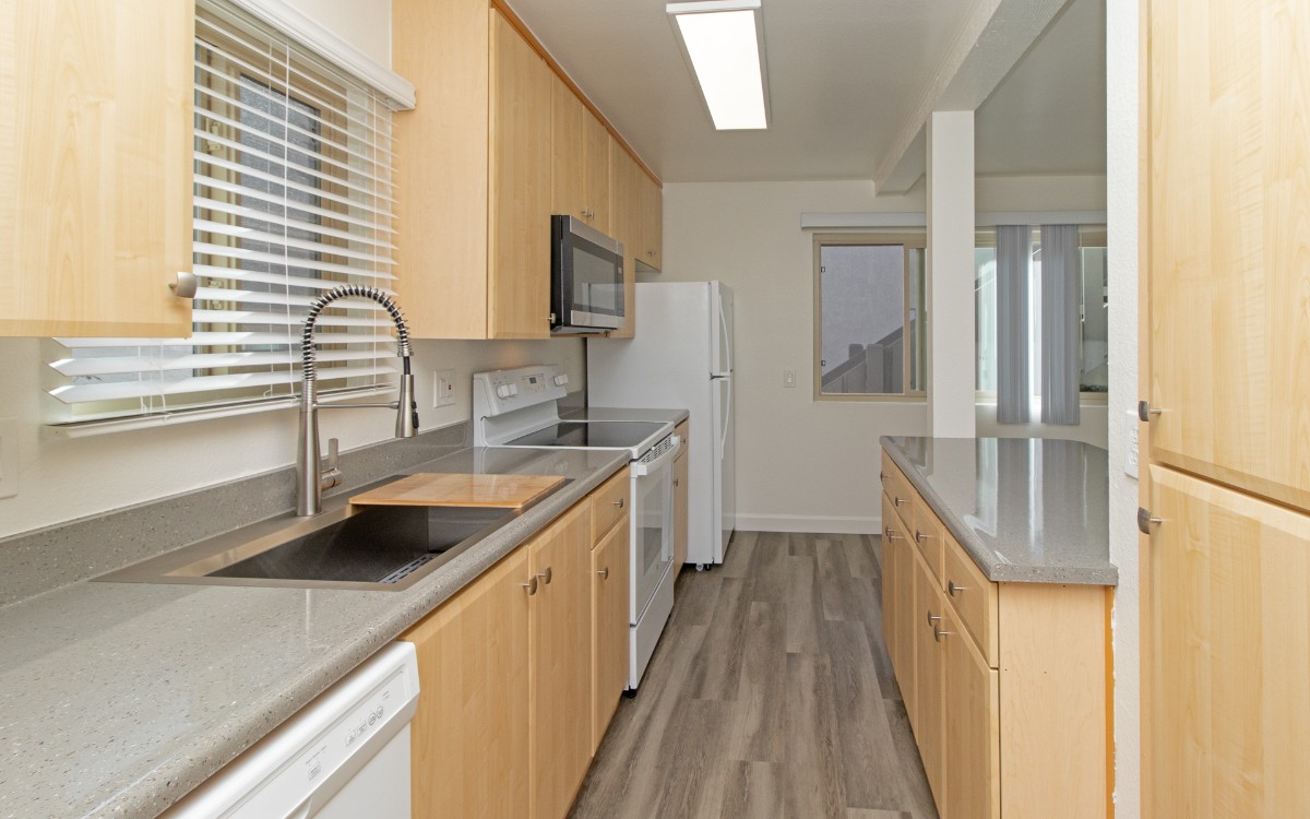 Discover the essence of comfortable and stylish living with our spacious open floor plan apartment, thoughtfully designed to meet your every need. Step into a world of contemporary elegance, as our beautiful modern style captivates you at every turn. The upgraded lights and accessories exude sophistication, while the grey tone luxury vinyl plank flooring adds a touch of refined luxury. Efficiency meets convenience with our selection of energy-efficient appliances, including a refrigerator, stove, dishwasher, and over-range microwave. The kitchen boasts a deep-set single bowl stainless steel sink with a convenient pull-down spray faucet, making meal prep and cleanup a breeze. This location offers easy access to the freeway, ensuring a stress-free commute. Imagine the joy of being within walking distance to downtown Carlsbad and the magnificent beach, where you can relish in the coastal lifestyle. Additional amenities include large (4.5'W x 9'D x 8'H) and small (4.5'W x 4.5'D x 8'H) storage units, and carports with an included storage closet at an additional fee. There is a community laundry room ran by CyclePay app, and gas BBQ grills for outdoor gatherings with friends and family. Residents can park up to 2 vehicles in the lot, and parking is plentiful. As a non-smoking and pet-free community, you can be sure to enjoy a clean and healthy living environment. Don't wait, apply today and make this beautiful apartment your new home. With so much to offer, it won't be available for long! **Photos are not of the actual unit but are a close representation.