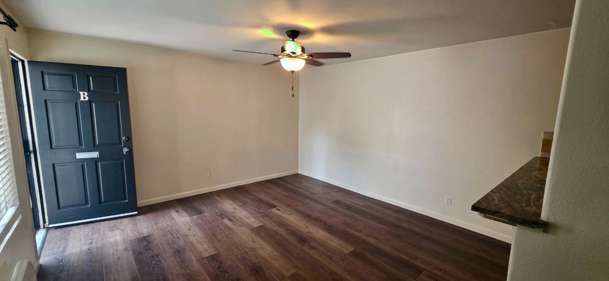 Beautiful one bedroom downstairs unit with assigned off-street parking space. AC unit, laundry room onsite, one assigned parking space. Water/Sewer/Trash is flat rate of $40 per person per month.
