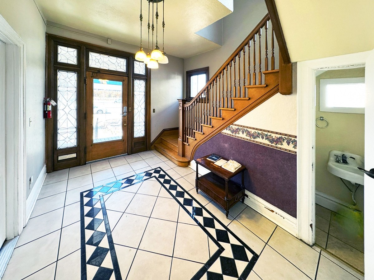 You’ll head up the big front staircase to the second floor, and your apartment is at the end of the hall. There’s also a back staircase that takes you straight to the kitchen or out to the parking area.