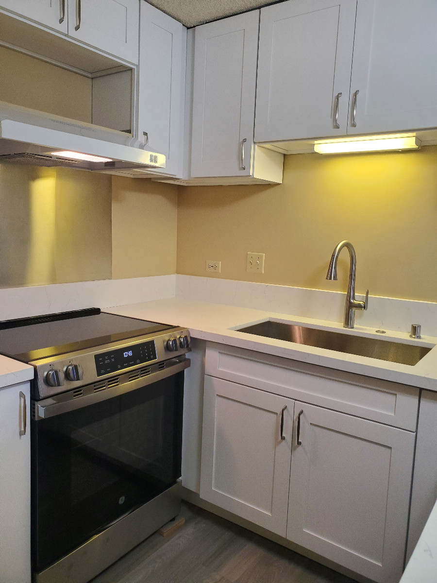Newly renovated 800 sq. ft top floor 1 bedroom/1 bath/1 covered parking A/C unit across from Salt Lake Shopping Center with mountain view. New kitchen, flooring and appliances. Washer/dryer inside unit. Secured building, swimming pool, sauna and large balcony. Tilted bathroom flooring and carpeted A/C rooms. 10 minutes to Pearl Harbor, Hickam, Fort Shafter and Kaneohe military bases. Rent includes water and sewer. You pay for utilities. One month deposit required, no pet, no smoking.