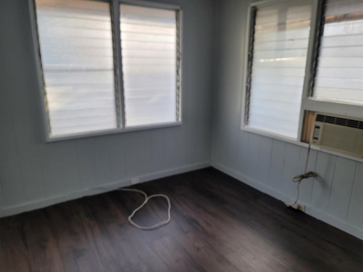 1/1/1 2nd floor corner unit is available now for immediate move in. A 1 bedroom, 1 bathroom, with one assigned parking stall located in Waipahu. Nice and quiet tucked away from the main street off Leokane Street. Kitchen includes a freestanding gas oven range and refrigerator. Vinyl plank flooring throughout, and washer hookup available on the property for each unit. window ac in photos are As-Is items.