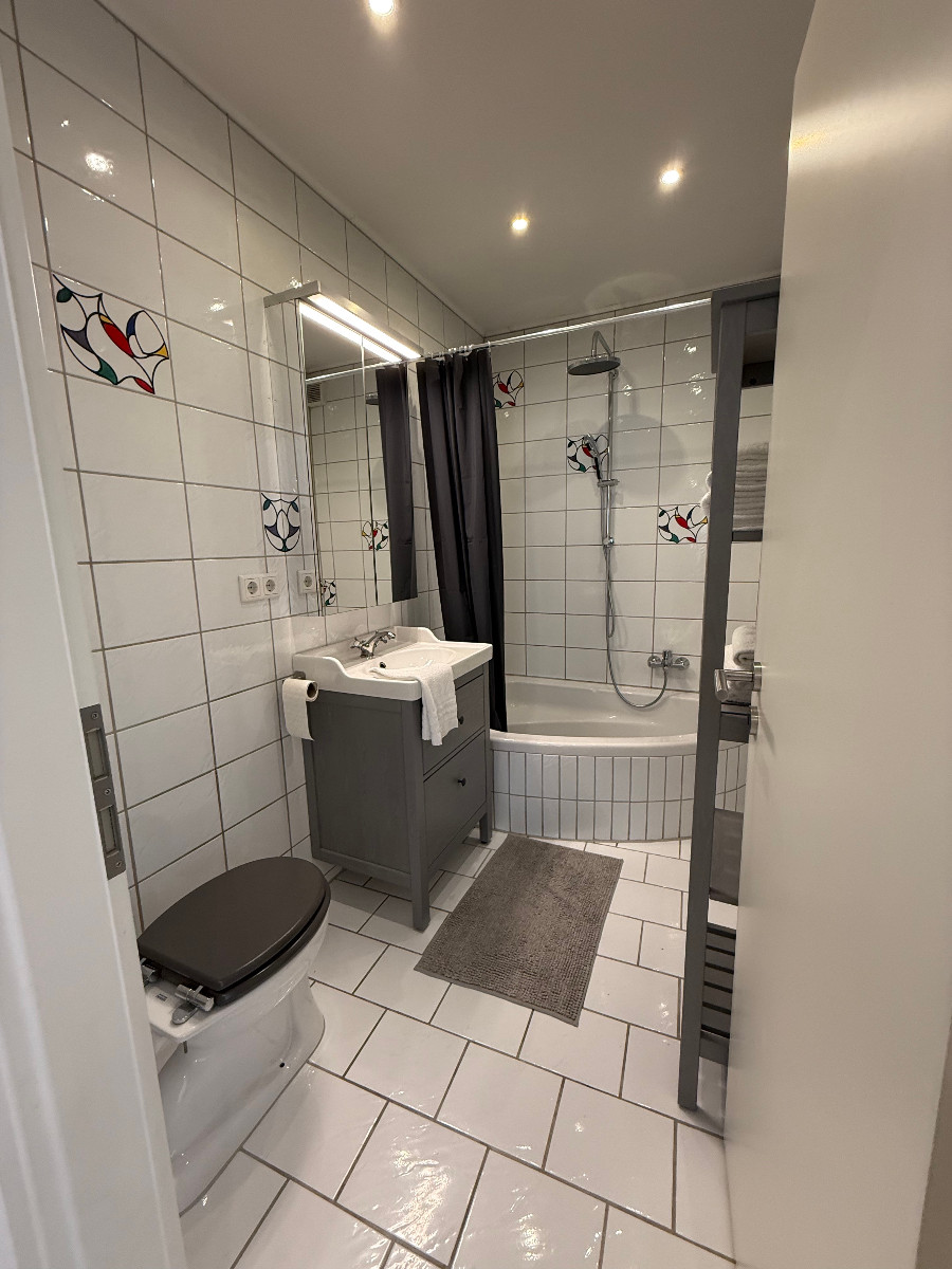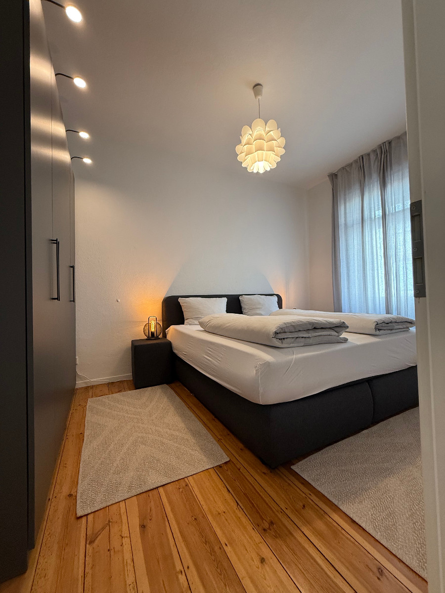 The apartment is located in downtown Kaiserslautern on the first floor of a 3 apartment house (all apartments are rented by members of the US military). It is newly renovated and fully furnished (see pictures), equipped with a modern kitchenette, bath tub and shower, roller shutter on all windows, hardwood floors and a utilities room with washer/dryer in the unit.