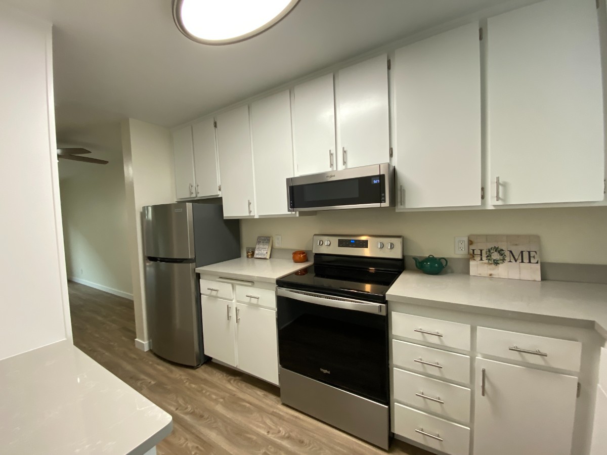 Experience coastal living in this spacious, remodeled 2-bedroom, 1.5-bath townhome-style apartment, ideally located within walking distance of the Village of Carlsbad and the beach. This two-level residence has been thoughtfully updated with modern flooring, fresh paint, and refinished countertops. The main level features a generous living area, a convenient half bath, and a well-appointed kitchen with white cabinetry offering abundant storage. A private rear patio extends your living space, perfect for relaxing or entertaining. The kitchen comes equipped with a range, dishwasher, and refrigerator for your convenience. Upstairs, you will find both bedrooms and a full bathroom. Enjoy significant savings with water, sewer, and trash included in the rent! Additional amenities include on-site laundry facilities, one covered parking space, and access to a community spa. Extra parking is available for an additional fee. Please note: Photos displayed are representative and may not be of the exact unit. This smoke-free, pet-free community rarely has availability—apply today, as this opportunity will not last.