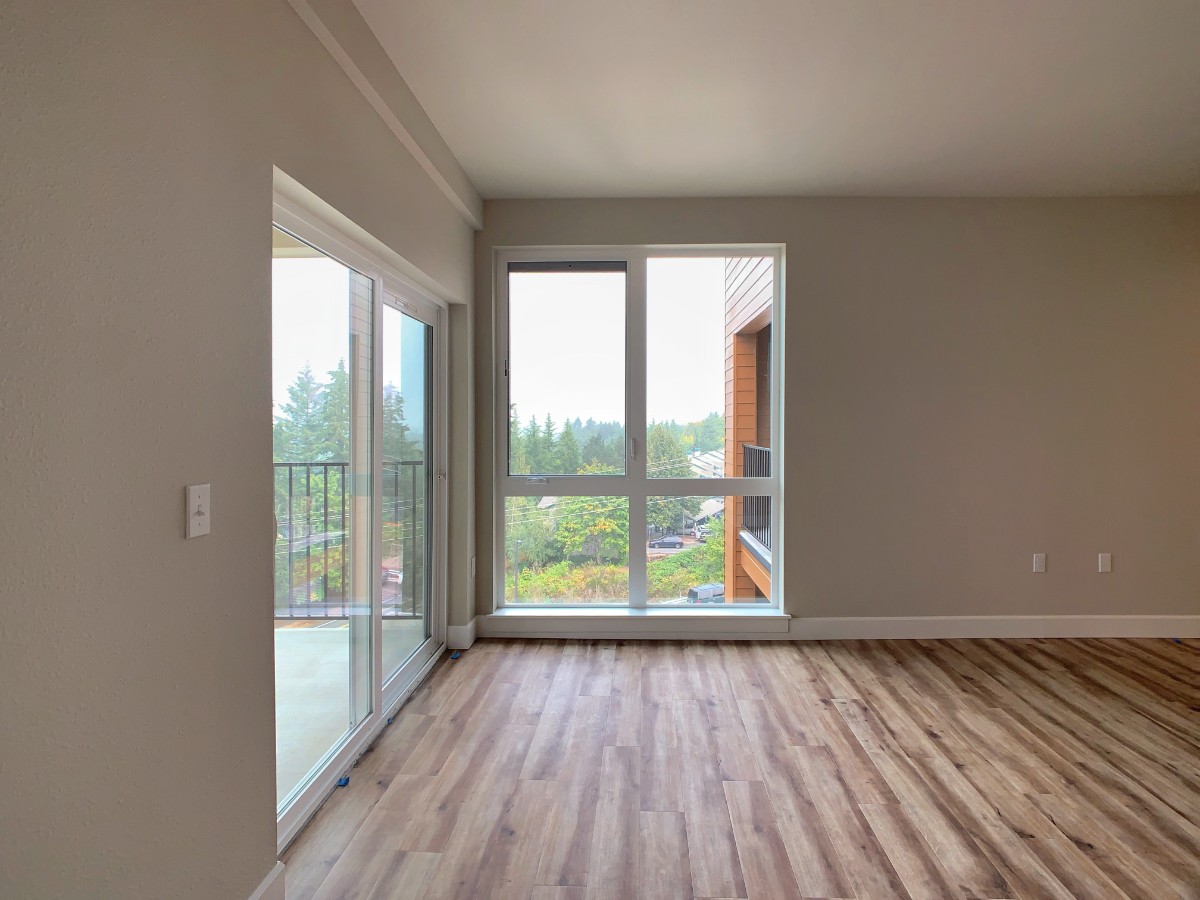 Experience the perfect balance of luxury and comfort in this stunning 3rd-floor two-bedroom, two-bathroom apartment on Tumwater Hill. The expansive layout features soaring 10-foot ceilings, floor-to-ceiling windows that fill the space with natural light, and a private balcony complete with a bonus storage closet. The contemporary kitchen showcases quartz countertops, stainless steel appliances, and stylish fixtures, while luxury vinyl plank flooring extends through the apartment with plush carpet in the living room & bedrooms. A laundry room includes a stackable washer and dryer for added ease and functionality.