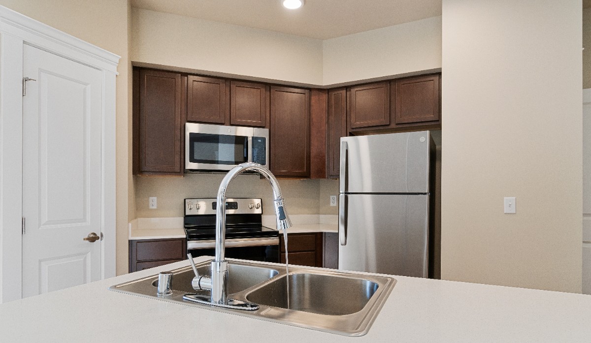 Experience the perfect balance of luxury and comfort in this stunning top-floor two-bedroom, two-bathroom apartment on Tumwater Hill. Enjoy sweeping views and upscale finishes throughout this thoughtfully designed home. The expansive layout features soaring 10-foot ceilings, floor-to-ceiling windows that fill the space with natural light, and a private balcony complete with a bonus storage closet. The contemporary kitchen showcases quartz countertops, stainless steel appliances, and stylish fixtures, while luxury vinyl plank flooring extends through the main living areas, complemented by cozy carpeting in the bedrooms. A spacious laundry room includes a side-by-side washer and dryer for added ease and functionality.