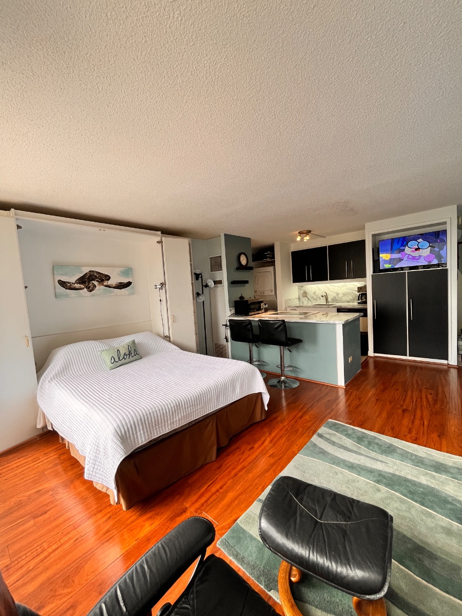 Ocean View at excellent location a cross of street from world famous Waikiki beach, Hilton lagoon,. Walking distance to Ala moana shopping center or Magic island. What else do we need? Dream just comes true..