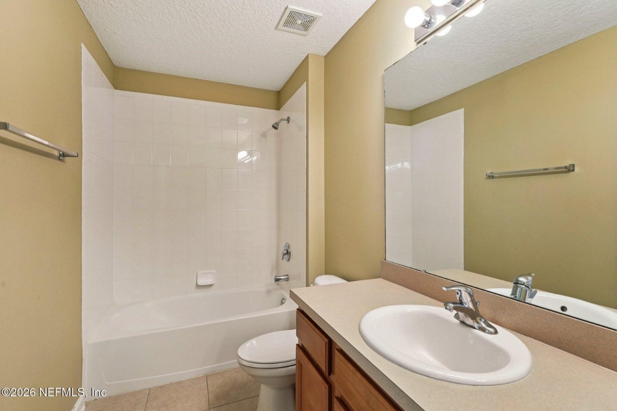 Enjoy vaulted ceilings, an open layout filled with natural light, and a spacious balcony complete with an additional storage closet. This well located home also offers convenient access to the nearby expressway and the Oakleaf Town Center, where shopping, dining, and entertainment are just minutes away. As you enter, the main living area welcomes you with soaring ceilings and an open floorplan. The layout flows easily into the dining area, where sliding glass doors lead out to the balcony. Just beyond, the kitchen is designed for everyday living with a breakfast bar top, plentiful cabinet and counter space, and a closet pantry. The bedrooms are positioned for privacy with new carpet and offer large walk-in closets along with comfortable space for a variety of furniture arrangements. Both bathrooms feature a single vanity and a bath/shower combo. A dedicated laundry room is conveniently located between the bedrooms. Residents also enjoy access to a wide range of association amenities