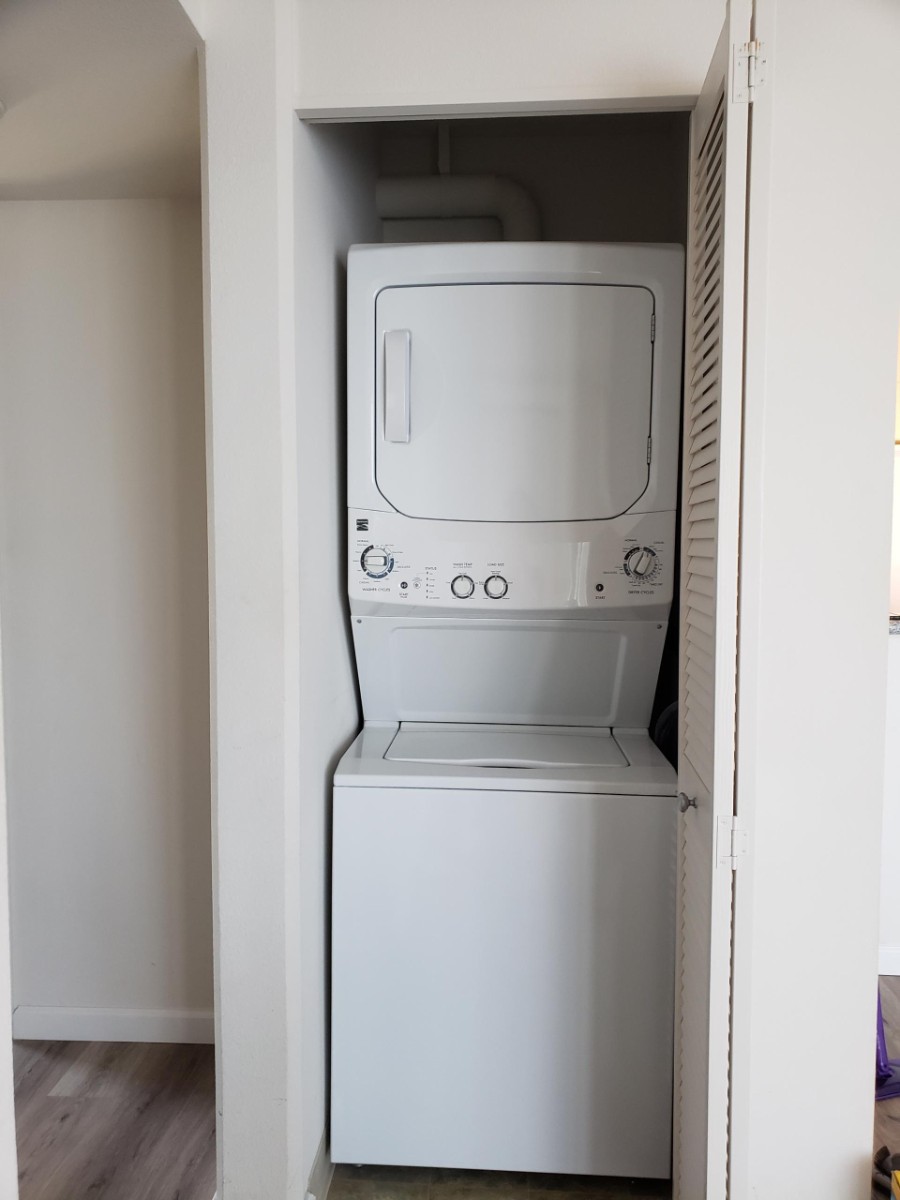 Kakaako, convenient location. Markets and lots of restaurants nearby. AC is split system. Ocean view. Water and wifi included. Washer and dryer in apt.