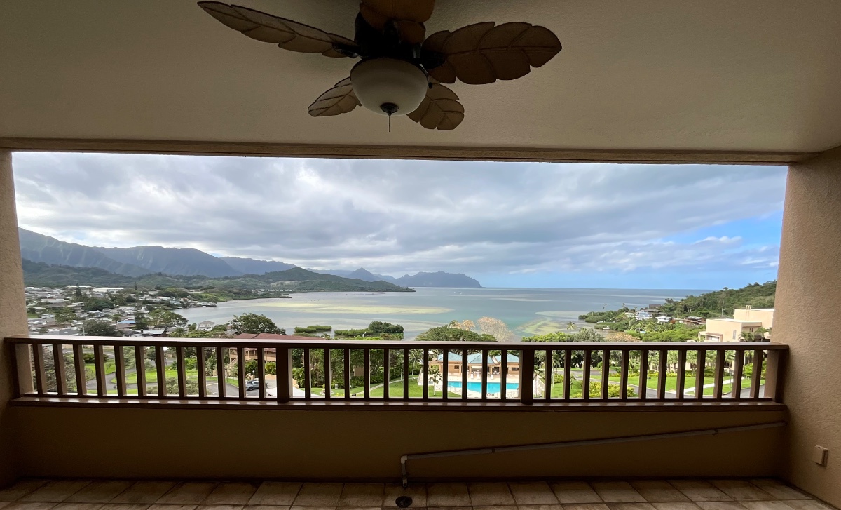 Enjoy a piece of paradise in the lush and beautiful Poha Kea Point. The BEST unit in the complex offering a top-level, upgraded unit with trade winds and amazing panoramic views of both Koolau Mountain Range and Kaneohe Bay! This clean, upgraded 1,258 SF (1,093 living; 165 lanai) unit offers 3 BDs with large main bedroom, 2 full BAs, large covered lanai, 2 parking spots (one covered), new full size W/D, and split AC units in living room and main bedroom. Enjoy resort-like amenities — 3 pools, 2 thermal spas, sauna, tennis/pickleball courts, BBQ / recreational areas, covered pavilions, walking/jogging paths, tai chi in the mornings, and roving security. Quick, convenient, and easy access to military installations (Camp Smith, Hickam, Pearl Harbor, MCBH, and Shafter) via the scenic, less-congested H3, Likelike, or Pali Highways. Great location for shopping, restaurants, beaches, and sight seeing—whether nearby in Kaneohe/Kailua and surrounding areas or downtown Honolulu and Waikiki. Pet negotiable with pet fee. Rent is $4700/mth and includes internet and water/sewer. This is a must see and must rent—will not last long! Available 2 April—sooner if needed.