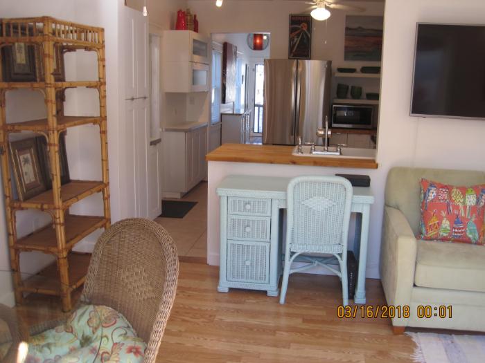 Exceptionally clean, bright, airy, nicely furnished (including kitchen) completely renovated ground floor one bedroom one bath in a very quiet neighborhood. Front Porch with Furniture. Backyard with patio furniture. OutDoor Shower/Washer/Dryer/Laundry Room. Towels/Linens ARE NOT included. Prefer one tenant with a possible occupancy of two persons for additional monthly fee.