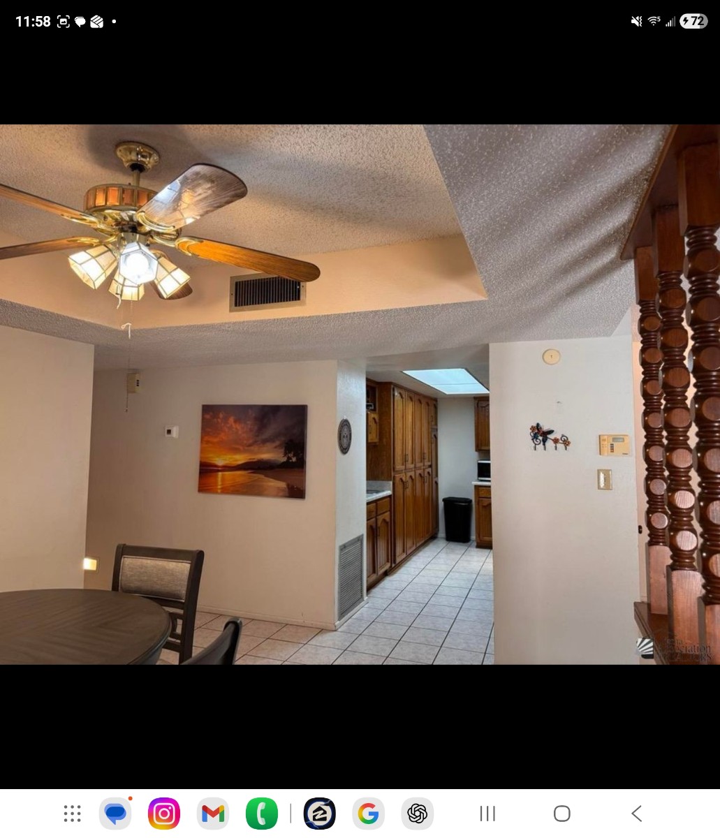 Dining area with ceiling fan