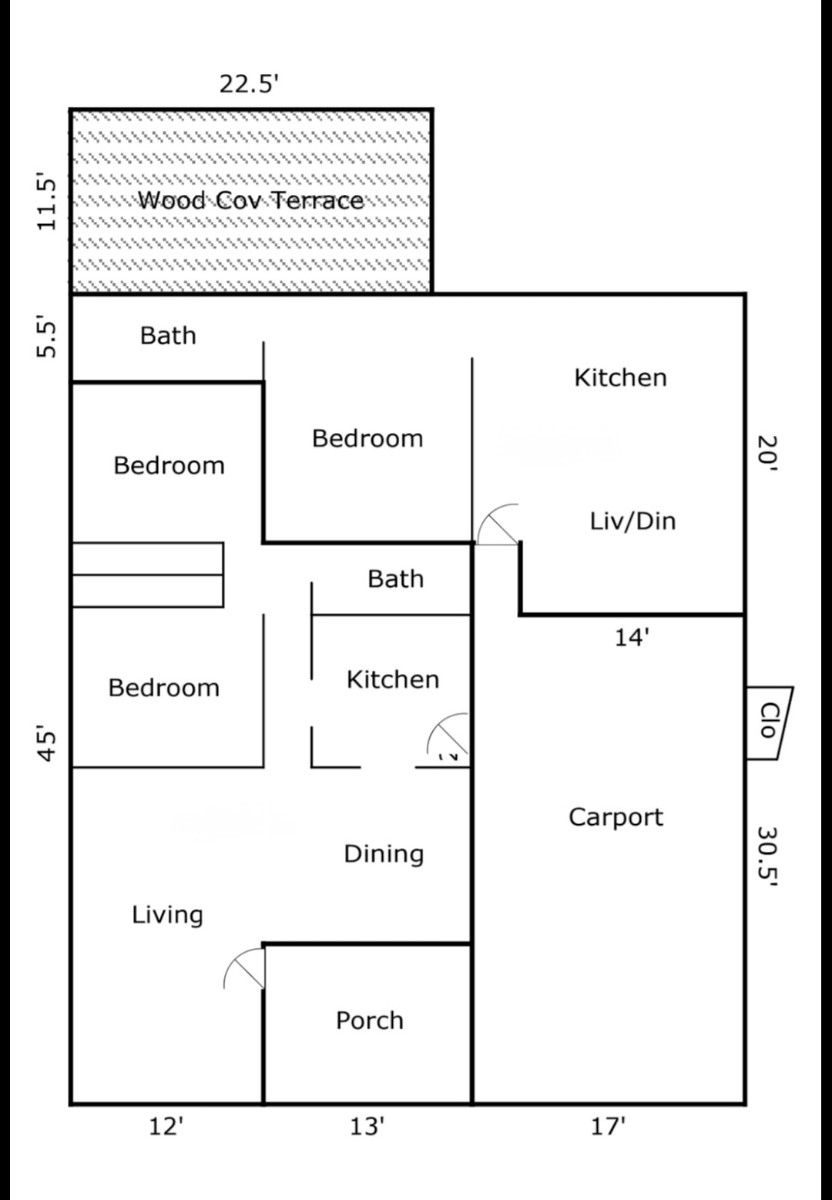 3 bedrooms (1 very large with its own bathroom and air conditioning) 2 bathrooms 1 split unit console in 1 living room 2 PVC kitchens 2 living rooms 1 gas stove top Large covered terrace Laundry area