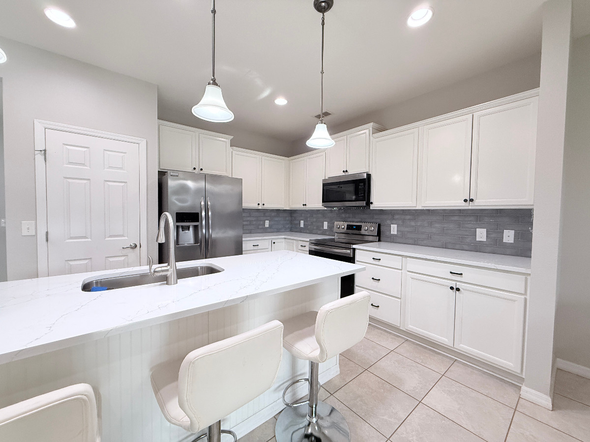 Discover this beautifully updated townhome located in a quiet gated community at the end of a peaceful cul-de-sac. This home offers a bright, open layout with no carpet throughout, featuring tile and luxury vinyl plank flooring for easy care and a modern feel. The spacious kitchen includes white cabinets, quartz counters, stainless-steel appliances, and a large island that flows into the living and dining areas. Upstairs, the oversized primary suite offers tray ceilings and abundant natural light, with well-sized secondary bedrooms nearby. Enjoy a private screened lanai —perfect for relaxing or entertaining. Community amenities include a resort-style pool and beautifully maintained grounds, gym and gated community. Conveniently close to Bartram Park shopping, dining, Baptist South, and easy access to 95 and 295, this home blends comfort, style, and location in one impressive rental.