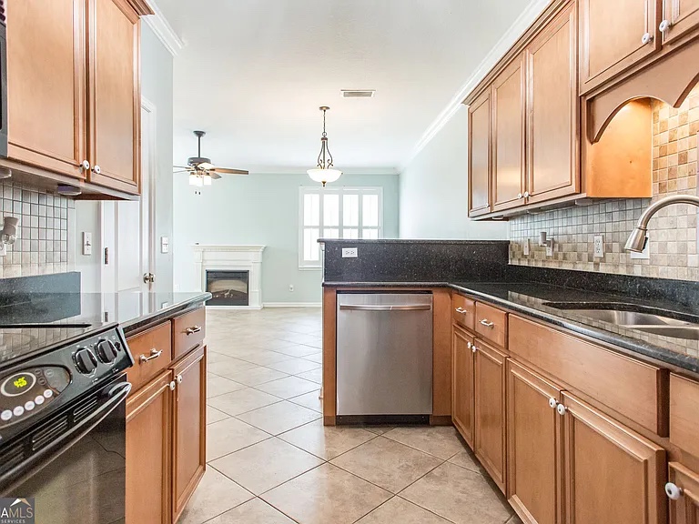 Welcome to this beautifully maintained 3 bedroom, 2.5 bath townhouse. Downstairs features an open-concept floor plan with tile flooring throughout the main living spaces, this home is perfect for both entertaining and everyday living. The kitchen is a chef's dream, boasting granite countertops, sleek black appliances, ample cabinet space with natural wood finishes, and a striking mosaic tile backsplash. A breakfast bar overlooks the dining area and living room, keeping the space open and inviting. The living room features a cozy electric fireplace and large windows that flood the space with natural light. French doors open to the backyard. Upstairs you'll find three bedrooms, including the primary suite with an en-suite bathroom, walk-in closet, separate shower and oversized bathtub. Two additional bedrooms share a full bath, and there's a convenient half-bath on the main level for guests. NEW HVAC REPLACED IN JANUARY 2025! END UNIT! NO HOA!