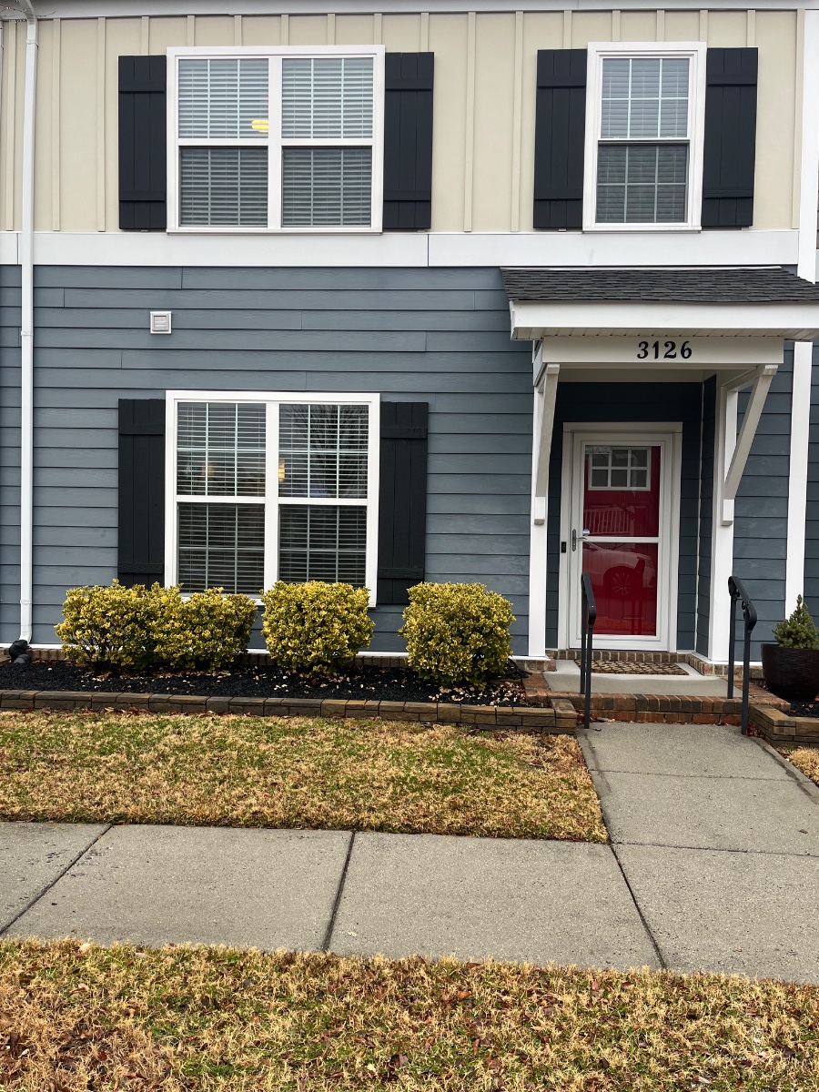 Townhouse in Deep Creek area of Chesapeake. 3 Bedroom with 2.5 baths. Carpet upstairs and hardwood floors and tile downstairs. Kitchen and all bathrooms have granite countertops. Attached one car garage with additional parking in the back. HOA fees are included and come with access to pool and fitness clubhouse.