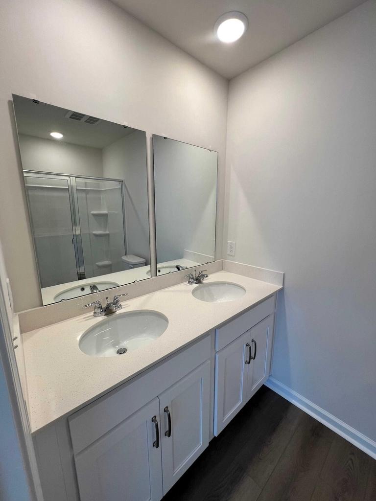 Upstairs, the primary suite is genuinely impressive: a spacious walk-in closet and a spa-style bath with dual vanities and a walk-in shower make it a true retreat. Two additional bedrooms (great for kids, guests, or a home office) share a well-appointed bath with quartz countertops. Laundry is a breeze with a brand-new LG large-capacity washer and dryer plus extra storage tucked in a dedicated upstairs laundry closet.