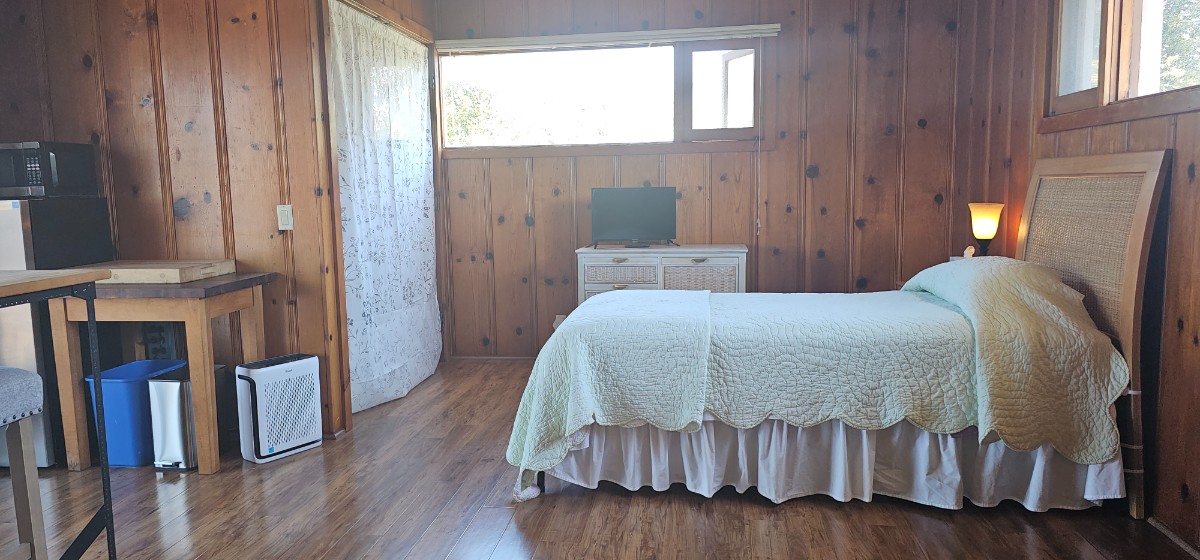 Presenting a beautiful, private entrance studio attached to home. Lots of light from windows - sunny, fresh and clean, shared yard. Friends and family call it the “treehouse” because of the cedar lined walls, vaulted ceiling and expansive view of trees that surround.