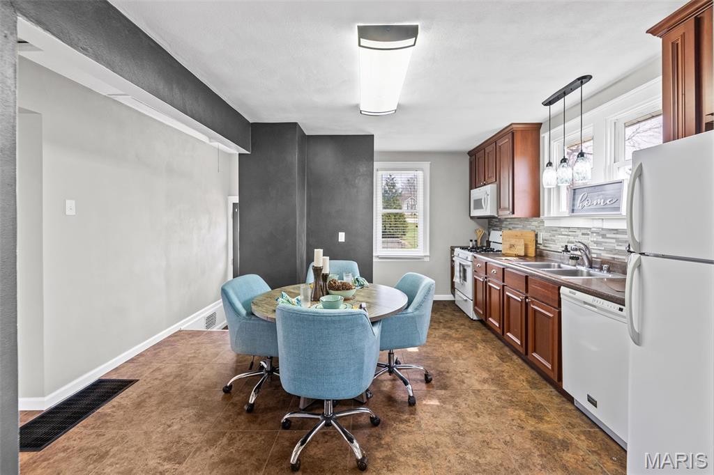 Welcome to 418 S Main Street—an updated and versatile bungalow in a prime Shiloh location. This home offers both charm and functionality. Inside, a fresh, neutral palette, durable luxury flooring, and an open dining/kitchen layout create a warm, spacious feel. The kitchen features rich cabinetry, ample prep space, and a mosaic backsplash. The bedrooms offer comfortable carpeting and generous natural light. The refreshed bathroom features clean, modern finishes. The expansive basement provides an open area perfect for storage, fitness, hobbies, or future finishing. Outside, the deep lot features a detached garage—ideal for a workshop, vehicles, or equipment. A beautiful patio makes entertaining effortless, and the tiered, tree-shaded yard offers endless possibilities. The roof is nearly new, HVAC is 2025. Did we say LOCATION? SAFB, hospitals, restaurants, shopping, interstate access and many other major conveniences are mere minutes away. Shiloh Elementary is right up the block! A rare opportunity in an unbeatable location—this property has space, flexibility, and convenience in the heart of Shiloh.