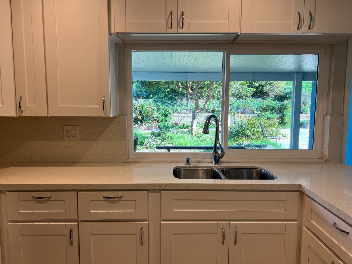 The open kitchen features a window overlooking the lush, private backyard, making it the perfect spot to enjoy your morning coffee while taking in views of mature fruit trees and greenery. Outside, relax under the covered patio and enjoy refreshing coastal breezes—ideal for entertaining or unwinding after a long day.