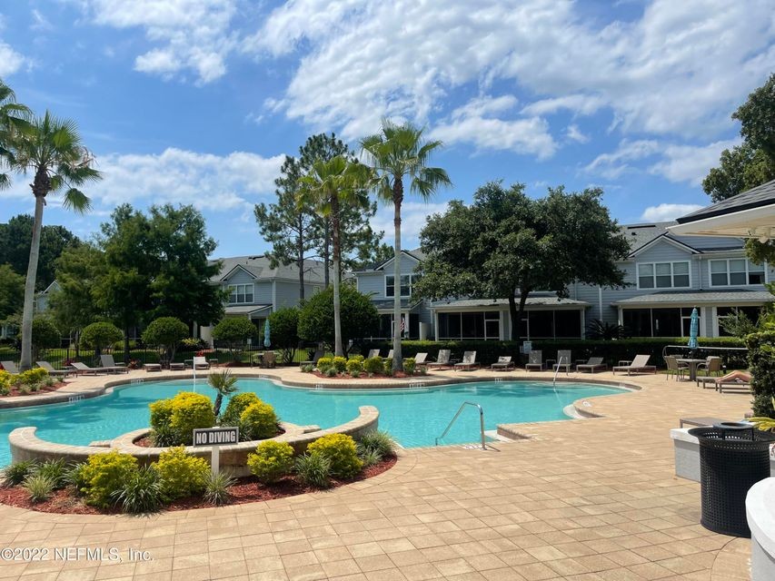 This townhouse is in the desirable Gated Community of Wolf Creek. Centrally located, close to UNF, Town center, shopping, restaurants, and beach. This townhome features a living and dining combination, kitchen, screened lanai, and half bath downstairs. Upstairs are 2 master bedrooms with spacious closets, 2 full bathrooms, and laundry closet. Enjoy the serene water view of the creek from the screen lanai.