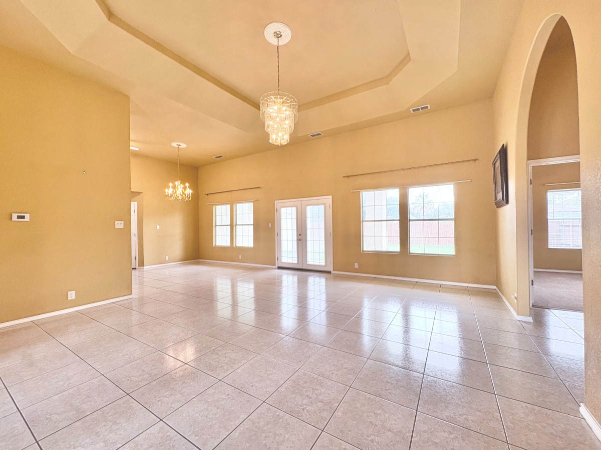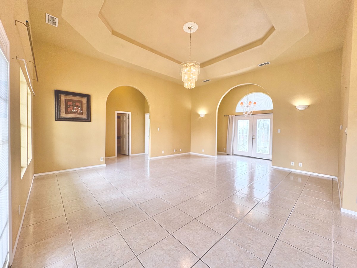 You're in for a treat! This charming Mediterranean style home offers the perfect blend of cozy elegance and modern convenience. With its palm trees, inviting front porch and lush landscaped entry, it welcomes you into a space where comfort meets style. Step into an open-concept haven where the Great Room, Dining Area, and Kitchen flow seamlessly together ideal for modern living and effortless entertaining. Soaring 12-foot ceilings give everything a lofty, sophisticated edge. Natural light dances across the space, enhancing the warm finishes and welcoming atmosphere. The covered back porch is perfect for grilling and relaxing in the shade. Effortlessly enable air conditioning and irrigation remotely with WIFI enabled control; and chill with new 2025 Energy Star efficient air conditioning. The primary suite offers a walk-in closet, dual vanities, jetted tub, and separate shower.
