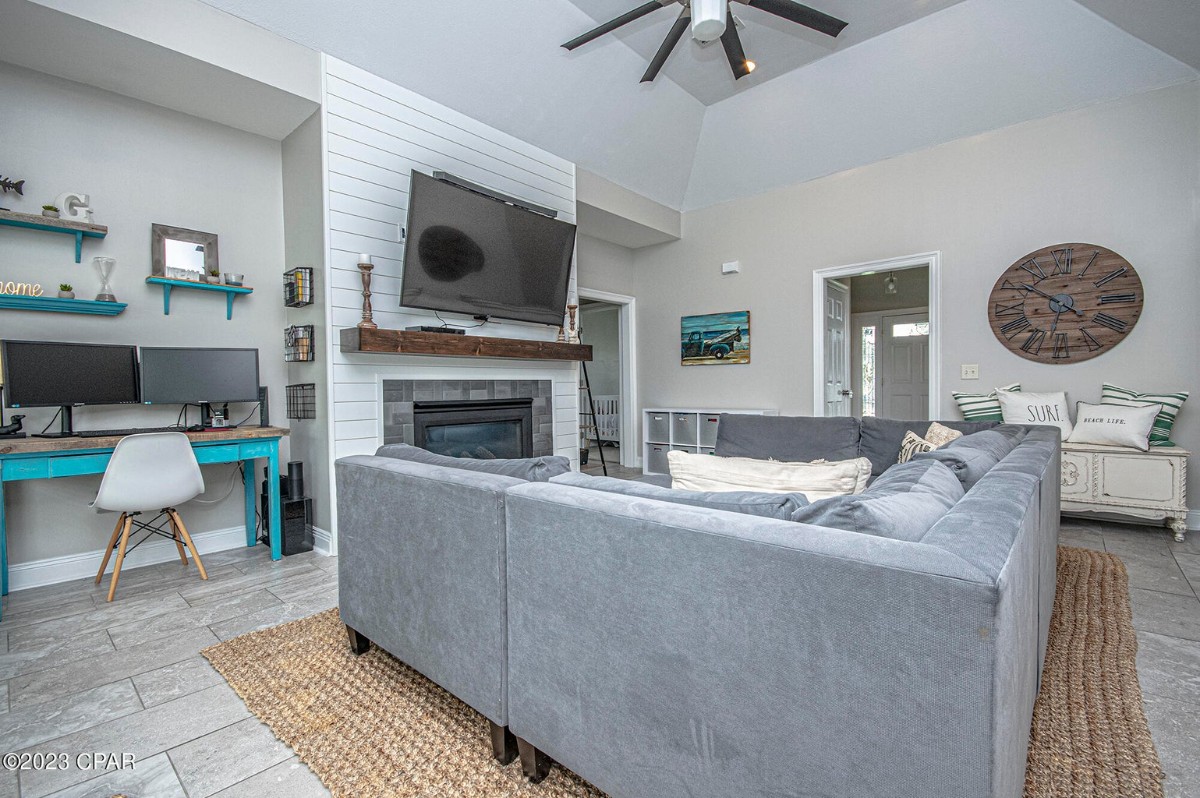Beautiful Craftsman home located in the center of Panama City Beach. Subdivision is Craftsman themed community. This home features a large front and back porch, formal dining room, great room with raised ceilings, breakfast bar and fire place. Large backyard outdoor activities. Upgraded master bath to over sized walk-in closet, large shower. All tile flooring throughout the home, carpet in bedrooms. New paint and light fixtures.