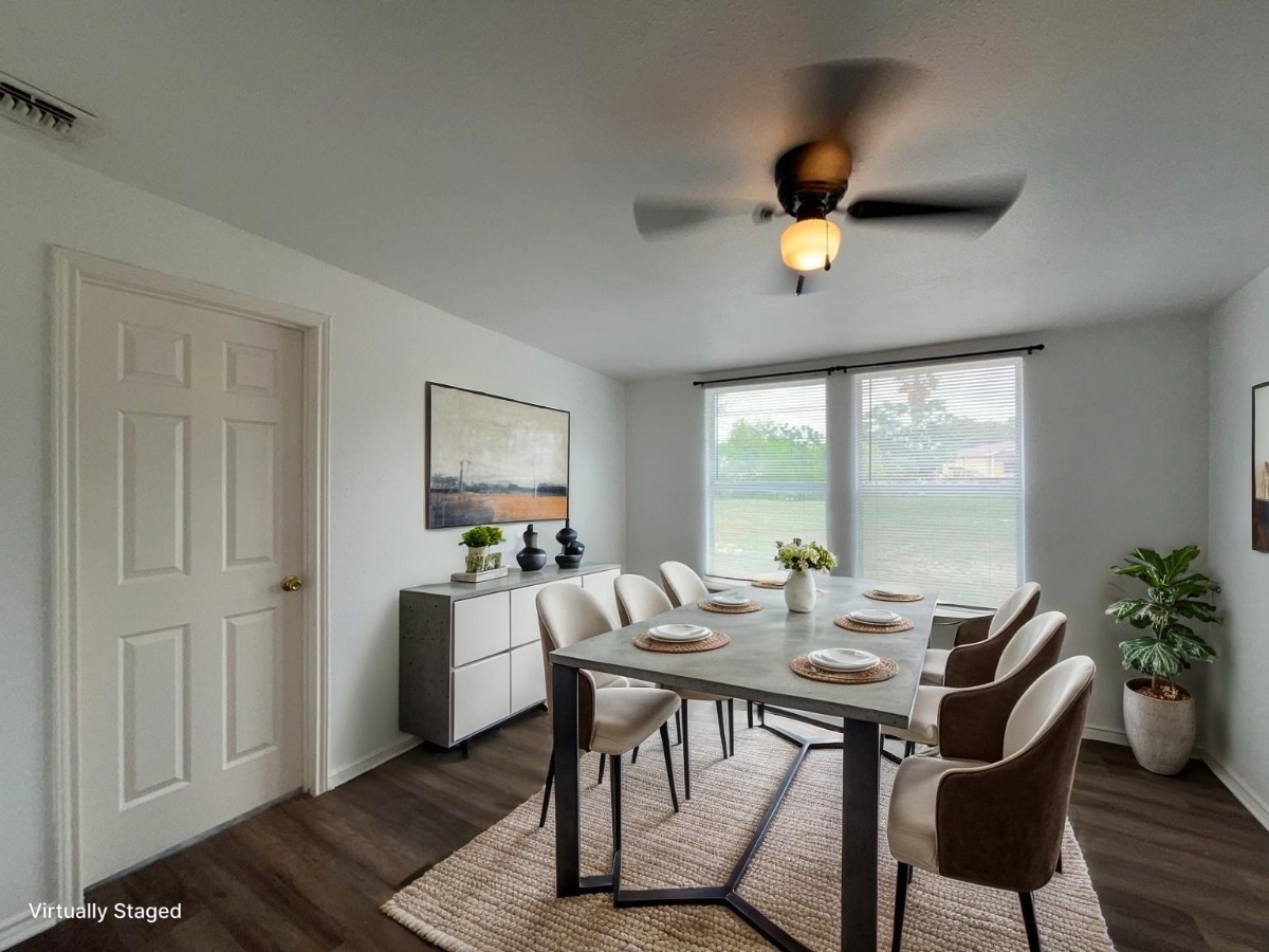 Welcome to this inviting 3-bedroom, 2-bathroom home that blends comfort and practicality with a relaxed, welcoming feel. Inside, you’ll find stylish vinyl flooring throughout, along with a dedicated dining room and a bright, comfortable living room, perfect for both everyday living and entertaining. The home is equipped with HVAC and a programmable thermostat to keep your environment just right year-round.