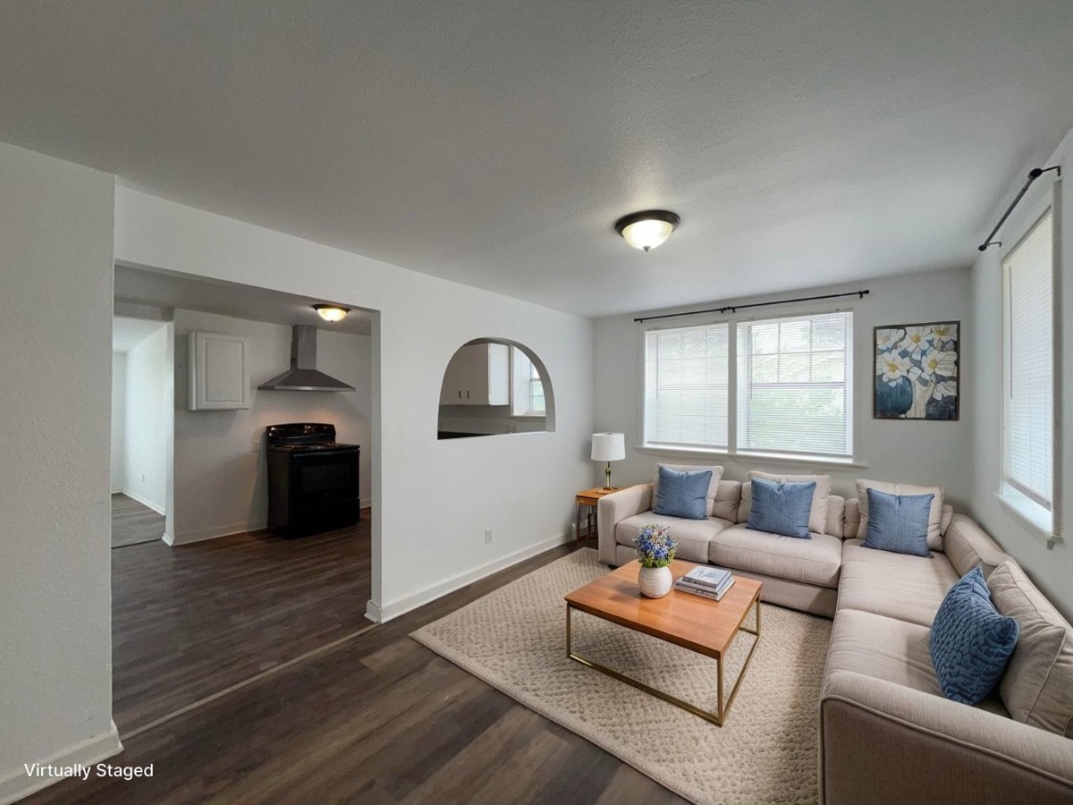The kitchen offers everything you need, including an electric stove, range and refrigerator, making meal preparation simple and convenient. A separate laundry room with washer and dryer hookups adds extra functionality to your daily routine.