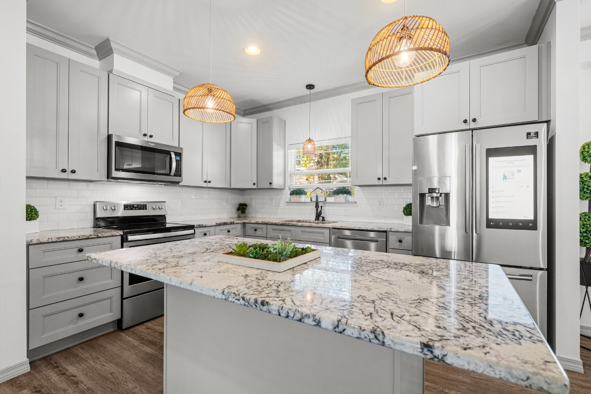 Beautiful all-brick home featuring an open floor plan and custom details throughout! Enjoy nine-foot ceilings, recessed lighting, and LVP flooring in the main areas with carpet in two of the three bedrooms. The spacious kitchen offers granite countertops, tile backsplash, stainless steel appliances including a touch-screen refrigerator, a center island with accent lighting, and a walk-in pantry. Split floor plan with walk-in closets in the master and one guest bedroom. The master suite features a double vanity and walk-in shower. Plenty of parking plus extra space behind the fully fenced gated entry for your RV or boat. The large backyard includes a like-new shed and a covered patio for relaxing or entertaining.