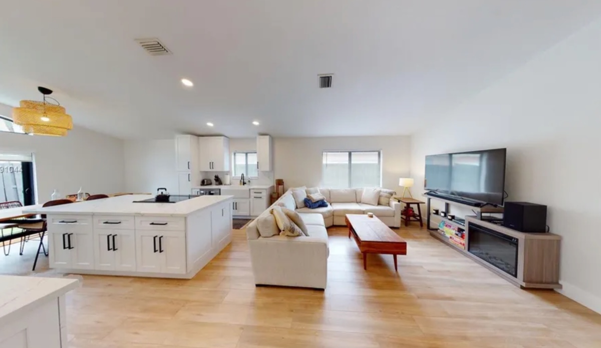 Stunning completely upgraded single family home in a gated community. The home features three bedrooms, two full bathrooms, single car garage with extended driveway. This home has an open floor plan that shows a spacious living/kitchen and dining area. Updated kitchen features quartz countertops, chef's cooking island, tall modern cabinets and stainless steel appliances. Updated modern bathrooms with walk-in shower in the master bathroom and freestanding bathtub in the second bathroom. Impact windows and doors throughout entire home, fenced backyard. HOA fee included in rent which includes high speed fiberoptic internet, premium cable, and security. Located in The Shores of Keys Gate, close to baptist hospital, shopping centers, restaurants, FL Turnpike & minutes from the FL Keys. Home is located 8 miles from the Homestead Air Reserve Base, an approximate 15 minute drive.