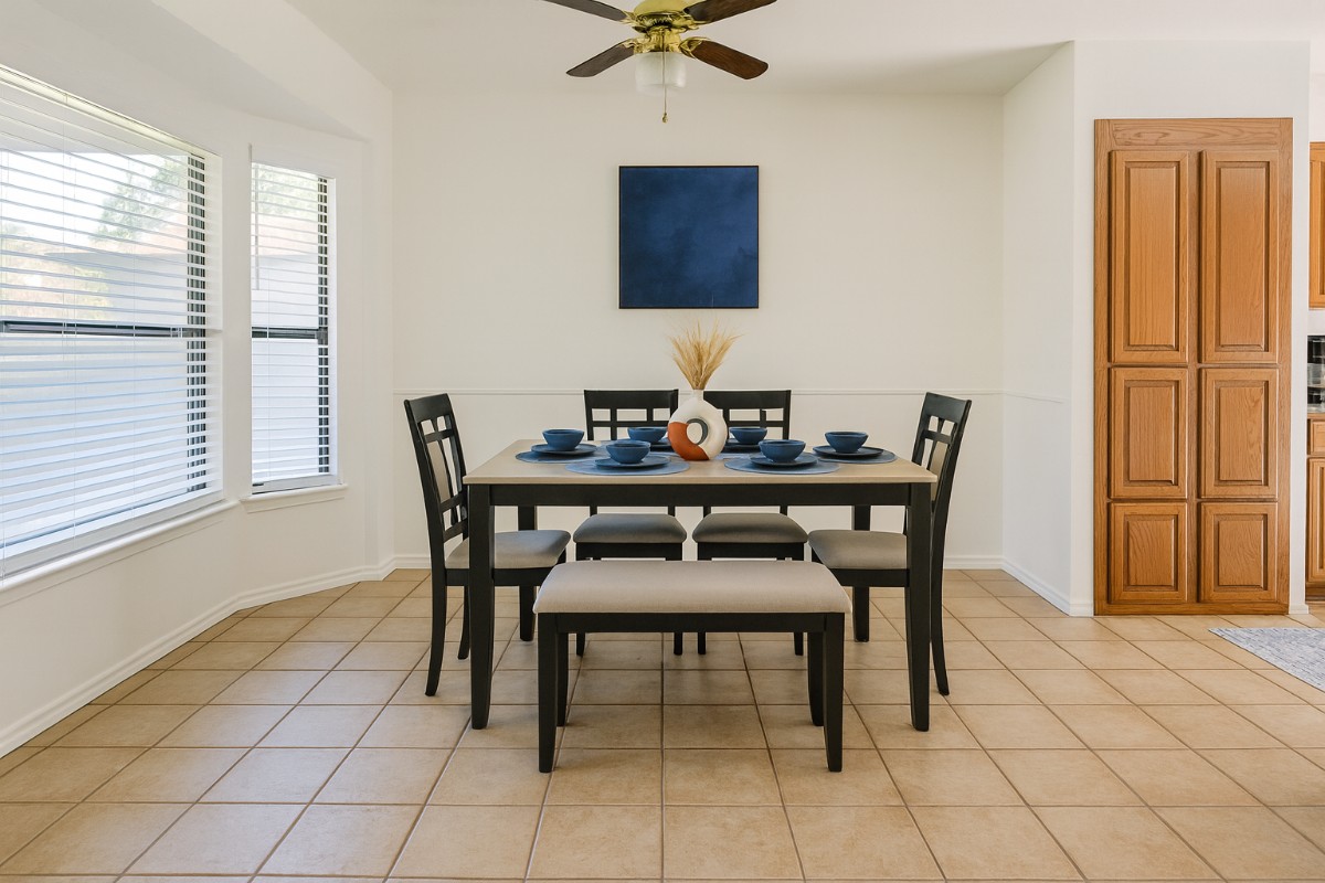 Beautiful 3-bedroom, 2-bath single-family home (approx. 1,744 sqft) featuring a contemporary open layout, fully equipped kitchen, high-speed Wi-Fi, and smart lock entry. Furnished for both mid-term (30–180 days) and short-term stays, the property includes a private backyard with seating, a work-friendly nook, and a spacious living area with mounted TV. Located minutes from Harris Methodist HEB Hospital, DFW Airport, and major corporate hubs along Highway 121/183. Perfect for families, corporate housing, and insurance relocations seeking peaceful comfort and convenience.