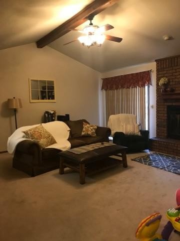 vaulted ceilings and fireplace with gas logs.