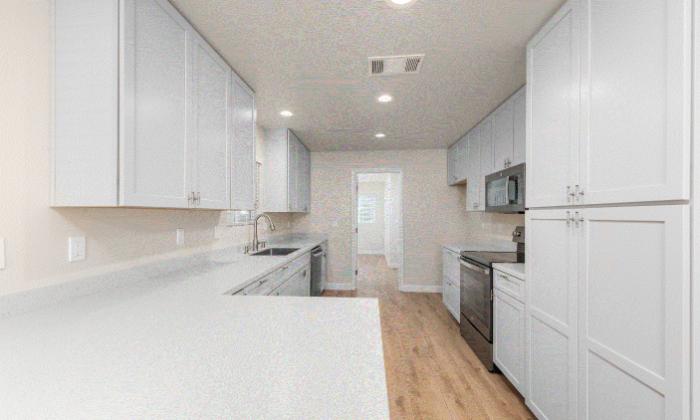 Mature orange trees, synthetic grass and partially covered patio in backyard perfect for entertaining. Plenty of parking available.