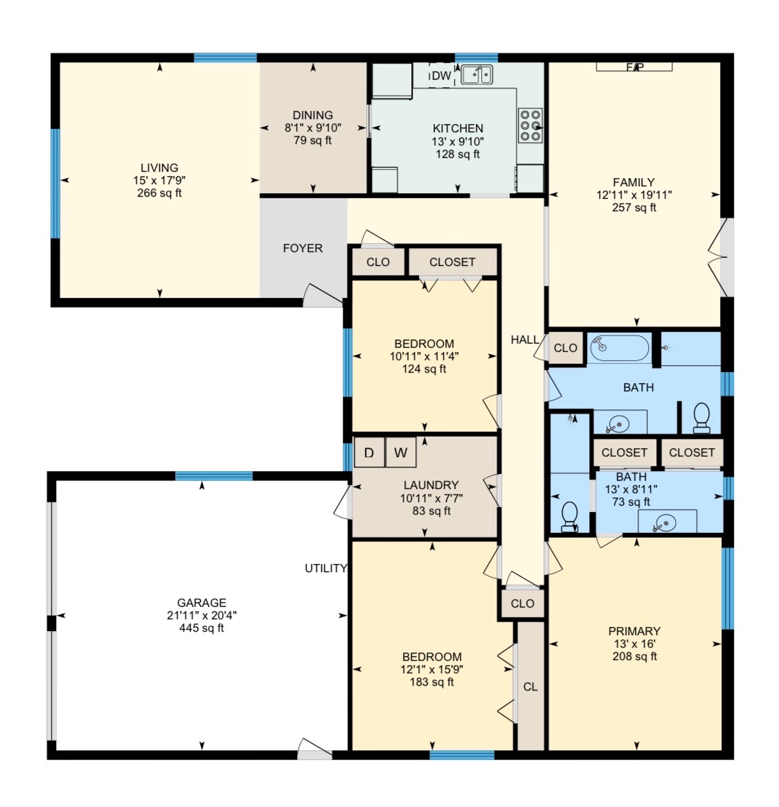 Step inside to find two large living rooms, complemented by sunlights, a brick wood burning fireplace, and hardwood floors. The newly updated laundry room boasts a stainless steel sink, washer/dryer, and ample cabinet space. One of the full bathrooms has a separate tub and shower while the other features dual closets.