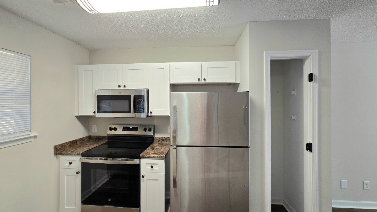 Renovated & Ready for Great Tenants! Fresh & Bright new paint job, new LVT flooring & lighting. 3 bedroom, 2 bath with open kitchen & living area. Updated kitchen with stainless appliances & stone accents on the new breakfast bar! Low maintenance vinyl home with fenced backyard, attached storage room and separate small storage building. Off street parking & Fire pit in private back yard...bring the S'mores!