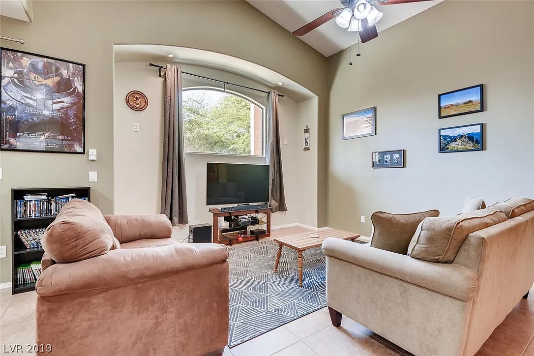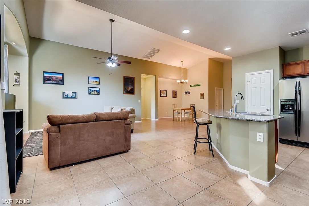 Great single story home in the quiet and private Waterfall community with gated entry, pool, spa, gym, splash pad, park, and green space. Great for kids! The community is nestled in North Las Vegas and offers mountain views with hiking trails, jogging paths, and hobby plane airport within walking distance. The home features all tile and vinyl plank flooring throughout this great home. Oversized covered patio in back yard with low maintenance yard. Vaulted ceilings in great room with open concept design. Kitchen features appliances, granite countertops and maple cabinetry. Separate Laundry room with washer and Dryer. 2-car garage with overhead storage space. Monthly rent includes monthly landscaping fees and HOA fees.