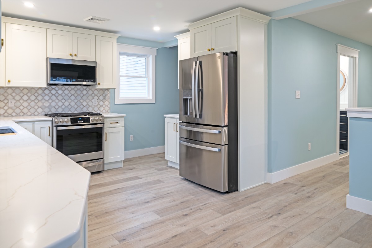 This newly renovated home boasts an array of modern upgrades, including a brand-new plumbing system, an instant hot water system, HVAC, electrical system, roof, siding, gutters, windows, luxury vinyl plank flooring, and appliances. Situated on a double lot, bay block within a charming neighborhood. The kitchen is equipped with state-of-the-art stainless-steel Smart Appliances that feature built-in Wi-Fi capabilities, through the SmartHQ app. There is ample space to enjoy meals in the kitchen or to dine casually at the bar top. At the rear of the kitchen is a spacious laundry area with plenty of room for storage. One bedroom sits at the front of the home just off of the great room. Ascending two steps near the kitchen you will find two additional bedrooms. The primary suite, located at the front of the home, boasts a beautifully designed ensuite bathroom featuring a custom stand-up shower and a walk-in closet. The second bedroom offers ample space and natural light facing the rear of the home. Outside, the backyard can be a true oasis. Its prime location, is just a short stroll from the Delaware Bay, where you can enjoy some of the most beautiful sunsets.