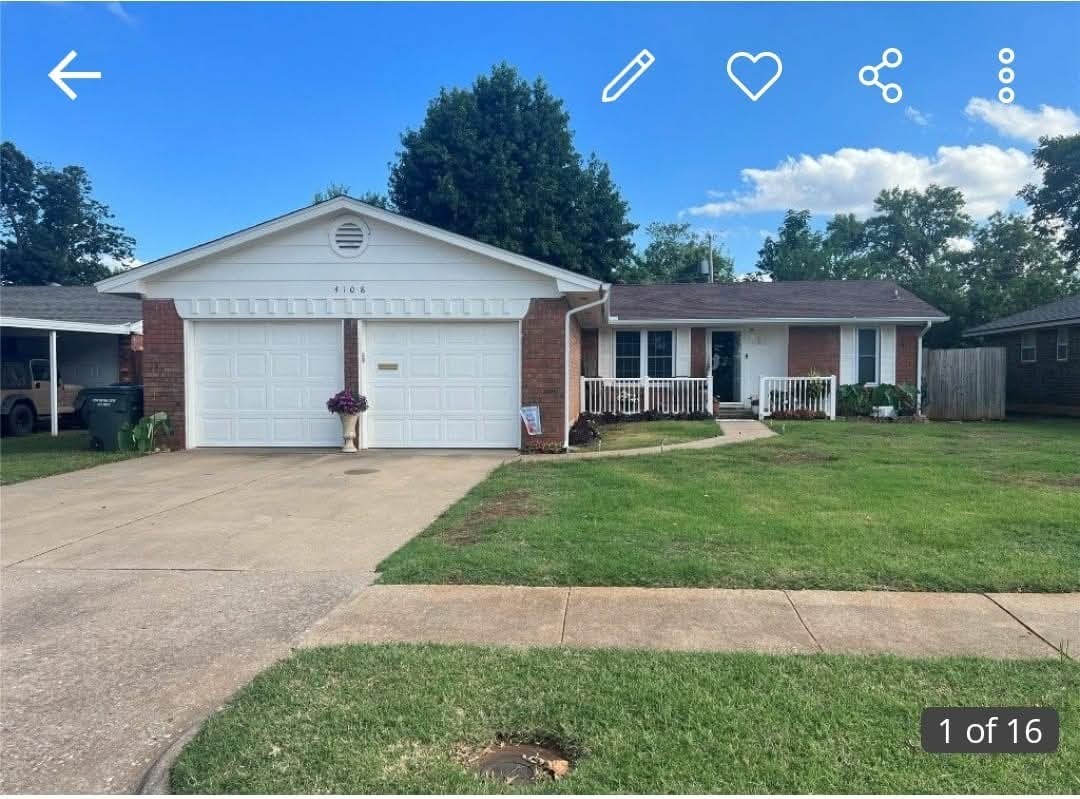 This 3bd/2ba, central heat/air house has a large backyard with privacy fencing and two car garage. $1400/mo rent, $1500 security deposit. Pets allowed for non-refundable pet deposit + $25/mo pet rent per pet, maximum of two pets. No section 8, no prior evictions, no mmj, & no smoking. Working appliances (fridge, gas stovetop, gas wall oven, dishwasher, & washer) included. Master bath has jacuzzi tub/shower. Great neighborhood, and super short commute to Tinker AFB.