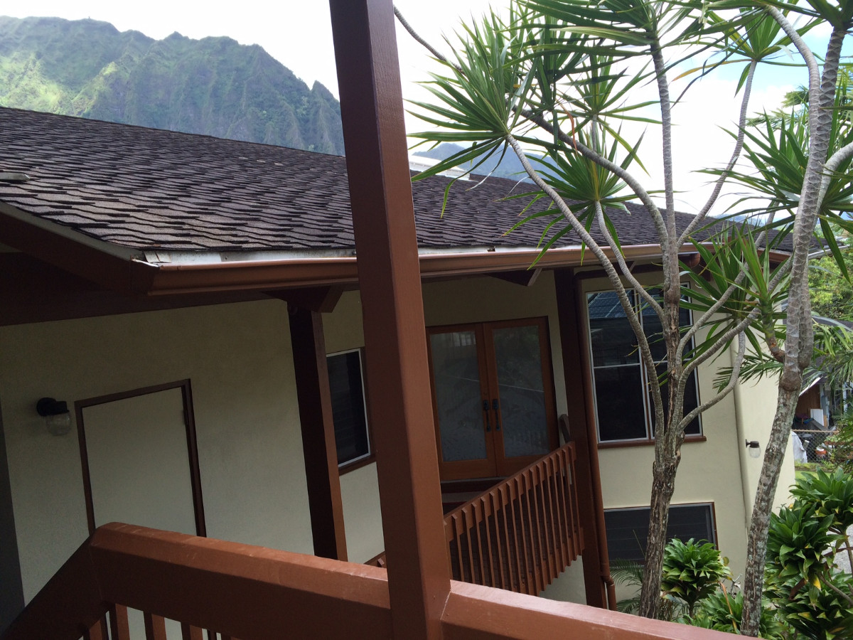 Quiet cul-de-sac location – only the sounds of birds and the breeze will disturb you. Home is located in a very quiet, residential neighborhood with little to no traffic noise - beautiful and serene Hoolmaluhia Botanical Garden is the backdrop. Quiet hours are 9p-7a except on holidays. Elevation offers nice breezes and freedom from worry about flooding/tsunami threats. Well maintained home has multiple hurricane security features including shatterproof glass in all windows, garage bracing, and rafter/foundation ties. Best location in Kaneohe for avoiding traffic. Easy access to H3, Pali Hwy and Likelike Hwy for peaceful commute. (No traffic lights to get to H3 on-ramp!) Available rental is upstairs portion of 2 story home with private entrance and excellent privacy. Downstairs unit has separate entrance and separate yard. Parking is in driveway or on street (ample and close). Cat (max 2) could be considered with separate pet deposit (exclusively indoor only).