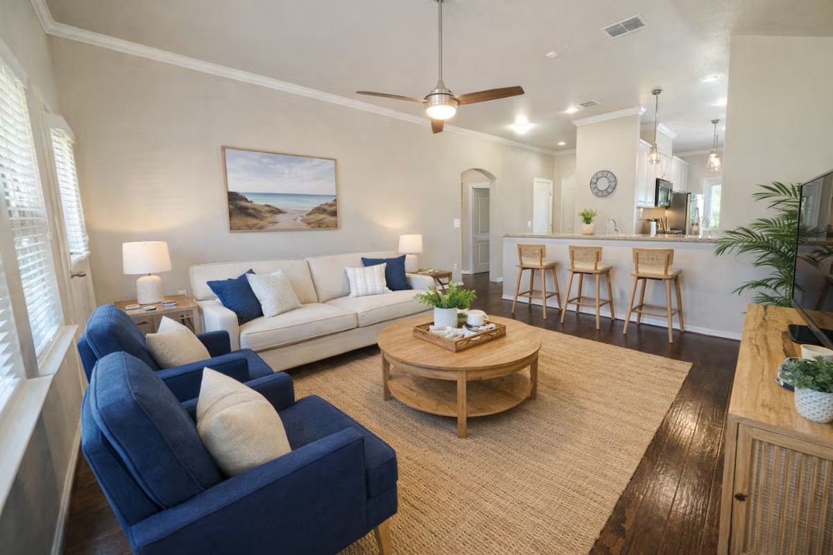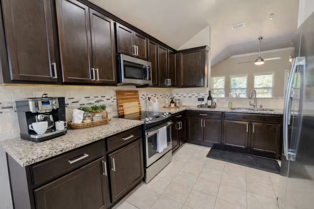 Stay at Ember House, a luxury modern 3BR/2BA home ideal for midterm stays, traveling professionals, relocations, and extended assignments near Frisco and Little Elm. Sleeps 6–7 comfortably, up to 8 guests, with a king suite, two queen bedrooms, hotel-quality bedding, and a queen sofa bed. Enjoy fast Wi-Fi, a full kitchen, workspace, in-home laundry, open living space, and a private backyard with fire pit. Stylish, fully furnished, and centrally located for a comfortable extended stay.