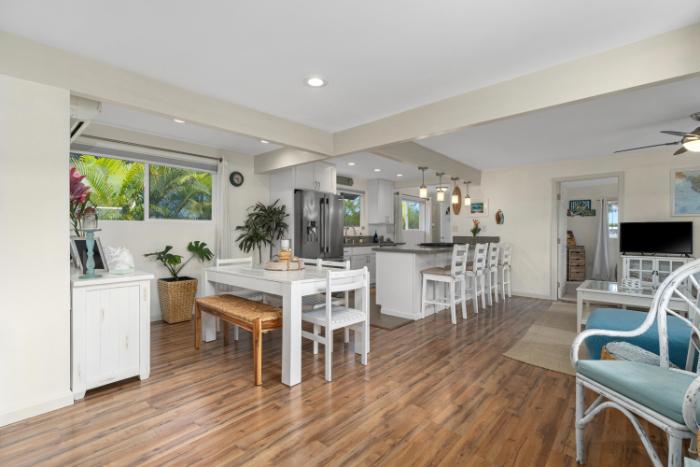 The community is family-focused and military friendly. Short drive to the Marine Corps Base (MCBH) and easy access to the side-gate entrance. Kailua has great farmers markets every Thursday and Sunday. The town has a public library, bookstore, Target, Whole Foods, local grocery stores, little restaurants, boutiques - a great beach town atmosphere - all within walking distance from the house.
