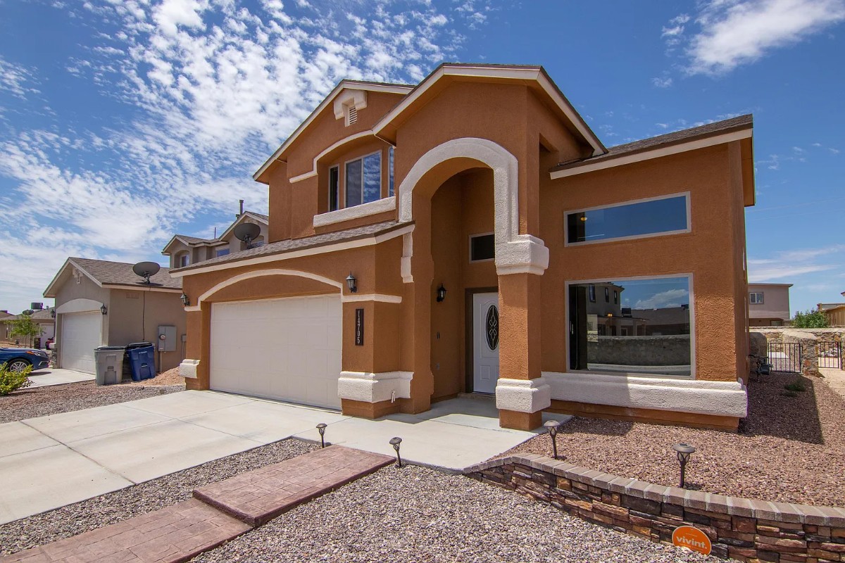 Beautiful 2 story Home in the thriving East El Paso neighborhood of ''Tierra Del Este''. 3 Bedrooms + large loft upstairs. The main bedroom has vaulted ceilings, large walk-in closet with built-ins and an amazing en-suite bathroom complete with water closet, over-sized garden tub, separate shower and dual vanity sinks. The kitchen has granite counter-tops, comes with stainless steel appliances, a food pantry and filtered water dispenser. The backyard is beautifully landscaped with a low-maintenance xeriscape. This Home is Move-in ready / Turn-Key. Refrigerated A/C, Automatic Garage Opener, Pre-Wired Speakers, Vivint Security System, Washer & Dryer Included