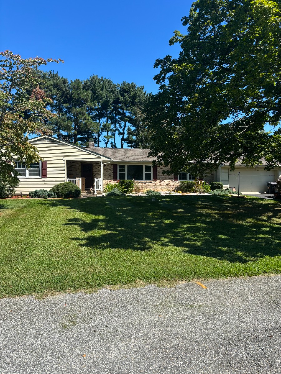 Beautiful ranch home for rent in the Caeser Rodney School District is located on a private drive. Just minutes from the Dover Air Force Base! The house is 3 bedrooms, 2 1/2 baths, Kitchen, separate dining room, living room, den and a sunroom! The house sits on almost a 1/2 private lot with a spacious back deck. Central air and oil heating. 2,350 a month, this includes grass services and trash. No pets. At signing first months rent and security deposit will be due. This beautiful home will be available on October 1st 2025.