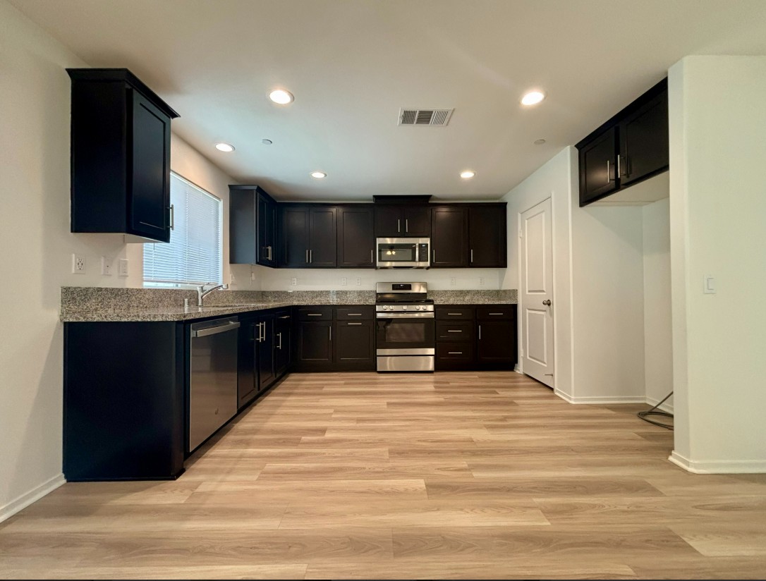 A charming front porch leads you into a spacious great room that flows seamlessly into the dining area and modern kitchen—perfect for entertaining or everyday living. The open-concept kitchen is equipped with granite countertops, Kona One Pass cabinets, and stainless steel appliances. Upstairs, you’ll find generously sized bedrooms designed for relaxation and privacy.
