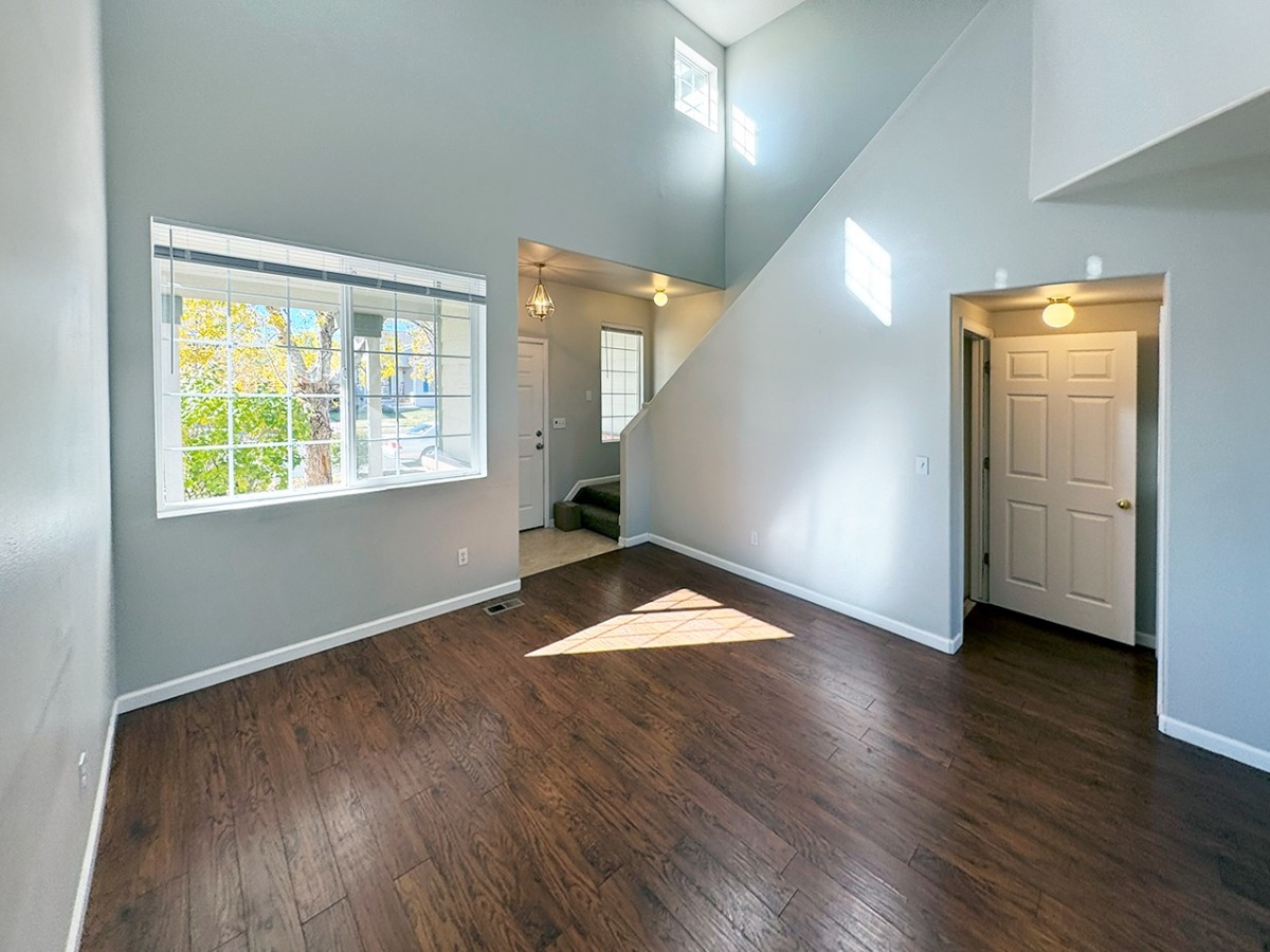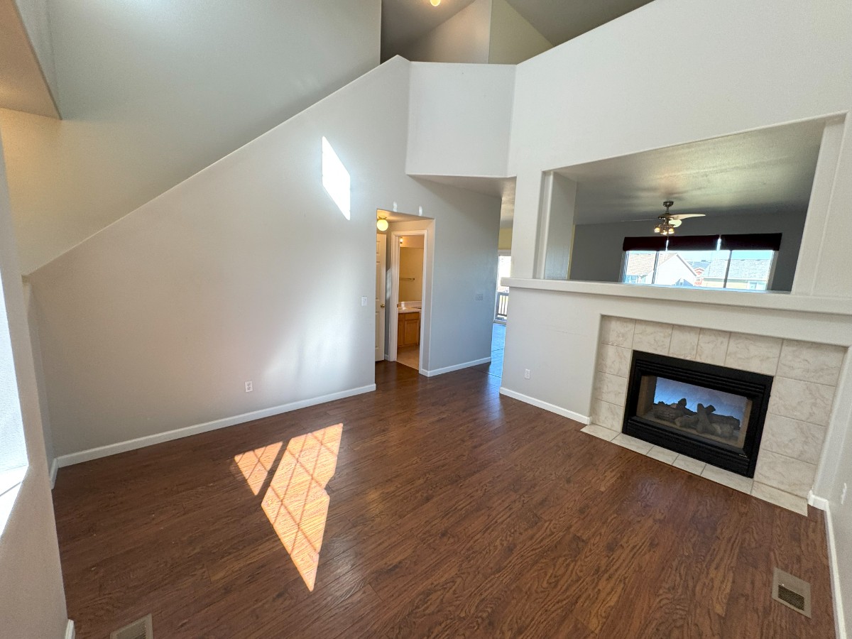 Welcome home to this 3 bedroom 2.5 bath home located in the Springs Ranch neighborhood. From the moment you enter you are greeted into the living room with ceilings that soar to the second floor, and gas fireplace. Dining Room on the opposite side of living room, with double sided gas fireplace. Eat in area, and kitchen just ahead with access to the deck and expansive backyard. Kitchen comes equipped with a refrigerator, stove, overhead microwave, pantry, and dishwasher. Washer and Dryer electric hookups. Head upstairs to an open loft, that overlooks the living room, with plenty of space for an office/play area/den. Primary Suite with 5 piece bathroom, 2 additional bedrooms, and 2 full sized bathrooms upstairs. Down in the unfinished basement, there is a slider door to the fenced in backyard.