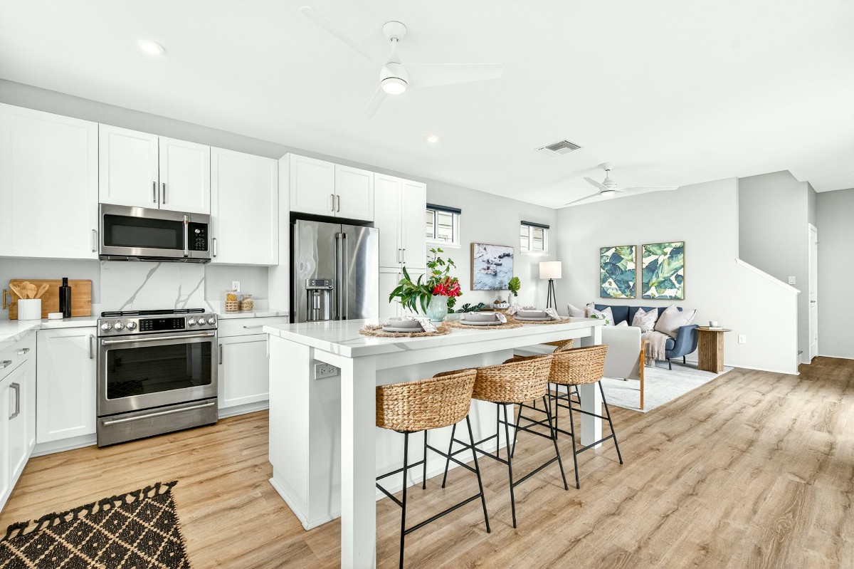Welcome to the highly sought-after Ka’ulu neighborhood! This newer 3-bed, 2.5-bath single-family home offers 1,673 sq ft of thoughtfully designed living space, blending modern style, privacy & energy efficiency. The open-concept layout features 9-ft ceilings, luxury vinyl plank flooring throughout, custom tile work, and a versatile BONUS LOFT. The kitchen is a true standout with white shaker cabinetry, quartz counters, and upgraded GE Café appliances, perfect for everyday living and entertaining. All the upgrades have been made--move right in! Enjoy peace of mind with leased PV SOLAR and TESLA POWERWALL battery backup, helping reduce electricity costs while powering the home’s central A/C. Ideally situated on a CORNER LOT along a greenbelt with only five neighboring homes, the property offers added privacy with no neighbors on one side. The beautifully landscaped yard has been professionally designed with an upgraded sprinkler system, stepping stones, lush tropical plants, and two finished concrete lanais- perfect for entertaining! Unwind in the DELUXE JACUZZI in your private, fenced backyard retreat. Conveniently located just minutes from H-1, with easy access to beaches, shopping, & dining in the growing “Second City” of Kapolei.