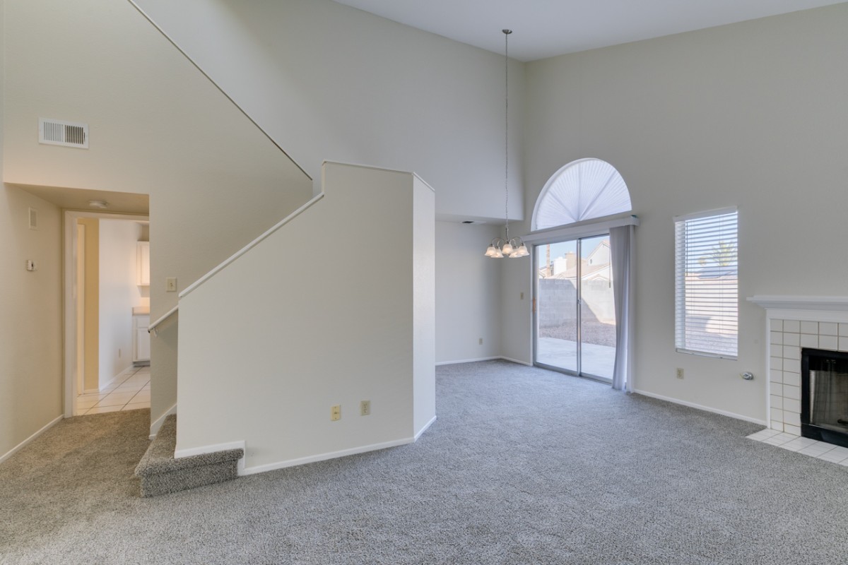 LOCATION, LOCATION, LOCATION! Reach the Airport, UNLV, or the I-215 in under 10 minutes. Welcome home to 7085 Magic Moment Lane; fresh, comfortable, and move-in ready. This home features brand new carpet and fresh interior paint, giving it a clean, move-in-ready feel from the moment you walk in. The open living space offers high ceilings, great natural light, and a cozy fireplace for everyday comfort. The kitchen connects easily to the dining area, making daily routines simple. A convenient first-floor bedroom with a full bathroom is perfect for guests, a home office, or added privacy. Upstairs bedrooms are spacious and well laid out. Enjoy a low-maintenance backyard with desert landscaping and a patio, ideal for relaxing without weekend yard work. Located close to shopping, dining, and easy freeway access.