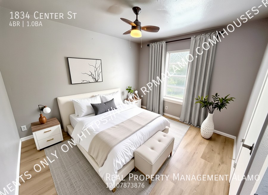 Welcome to 1834 Center St, a charming and thoughtfully updated home situated just minutes from the heart of downtown San Antonio. This four-bedroom residence blends modern functionality with classic style, offering a layout that maximizes space and comfort. Step inside to find stainless steel appliances in the kitchen, including a refrigerator, stove/oven, and built-in microwave — all seamlessly integrated to support daily living and entertaining. The home features ceiling fans throughout and a convenient stackable washer and dryer, offering everyday efficiency. The bathroom is centrally located and easily accessible from all bedrooms. A spacious walk-in closet provides ample storage options, while the fenced yard and covered patio extend the living space outdoors — ideal for hosting or relaxing. With its central location and smart features, this home brings together accessibility, design, and ease of living in a well-connected area of the city. For more information or to schedule a tour, feel free to reach out to us at Lease@rpmalamo.com – we’re happy to assist!