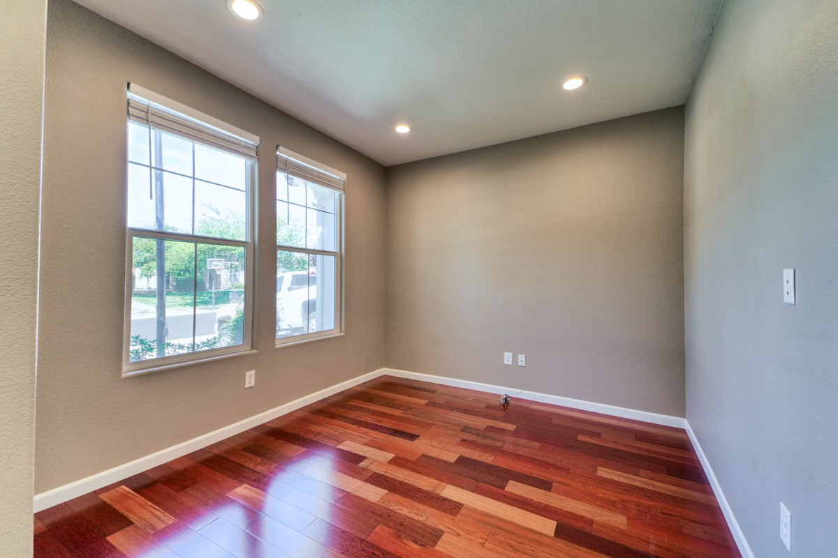 Spacious Living: Real wood floors, gas fireplace, and open floor plan.